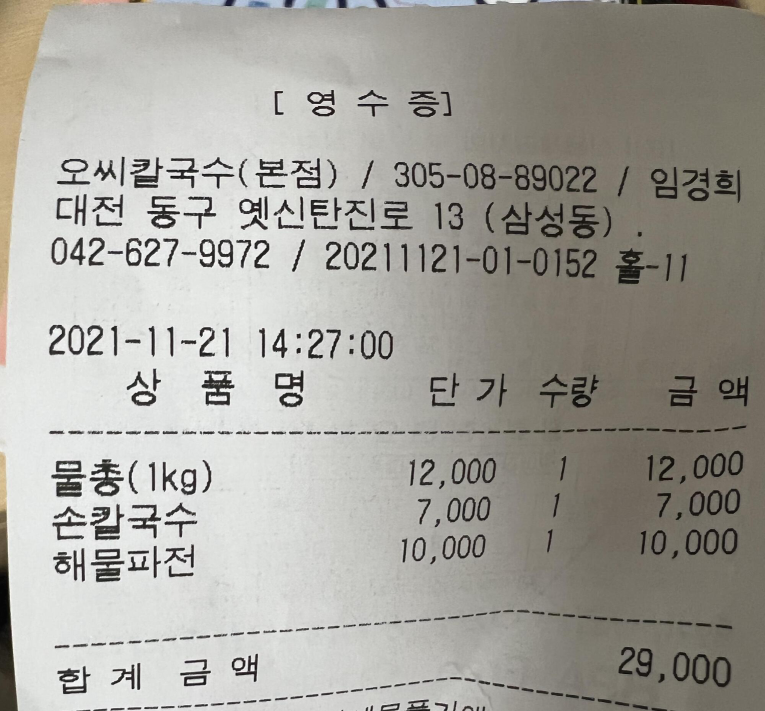 처음에 뭣모르고 칼국수 두개에 해물파전을 시켰는데,